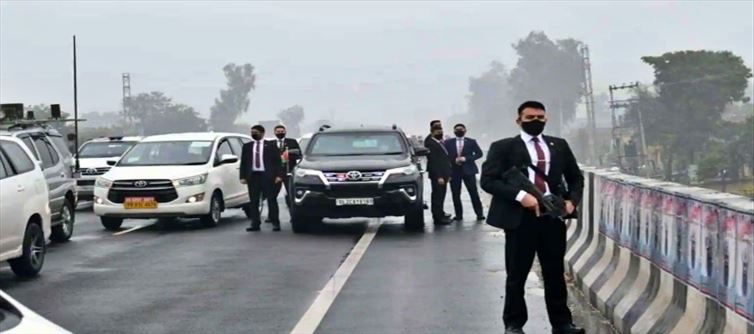 हुसैनीवाला में राष्ट्रीय शहीद स्मारक से लगभग 30 किलोमीटर दूर, जब पीएम का काफिला एक फ्लाईओवर पर पहुंचा, तो पाया गया कि कुछ प्रदर्शनकारियों ने सड़क को अवरुद्ध कर दिया था। पीएम 15-20 मिनट फ्लाईओवर पर फंसे रहे। यह पीएम की सुरक्षा में एक बड़ी चूक थी।