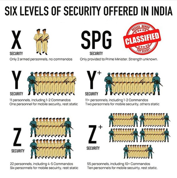 VVIP security is decided by a joint committee of the Intelligence Bureau, home Secretary, and home Minister. Yes, sometimes security is provided even with the approval of the state government. There are four categories of VVIP security. These categories are X, Y, Z, and Z+. Z+ is a top-notch security system. Along with Z+, SPG security is also provided to the most prominent people of the country. Considered extremely expensive and accountable, SPG security was also available to sonia gandhi, rahul Gandhi, and priyanka gandhi till 2019, since then it protects only the Prime Minister.