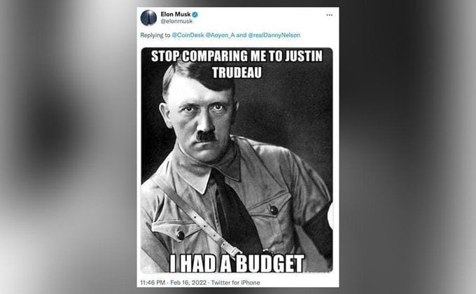 Musk responded with another tweet on Wednesday, this time in favour of them. He shared a meme photo this time. In the meme, there was a portrait of Hitler with the words 'Stop comparing me to Justin Todd' written on it.