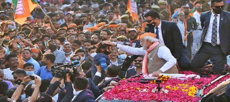 जब प्रधानमंत्री का काफिला शहर से गुजर रहा था तो भीड़ ने जय श्री राम के नारे लगाए और गुलाब की पंखुड़ियां बरसाईं। प्रधानमंत्री ने गले में भगवा टोपी और एक गमछा (तौलिया) पहना था। 2014 के लोकसभा चुनाव के लिए नामांकन पत्र दाखिल करने के बाद पीएम मोदी ने वाराणसी में अपना पहला रोड शो उसी स्थान से शुरू किया था। रोड शो तीन विधानसभा क्षेत्रों छावनी, वाराणसी उत्तर और वाराणसी दक्षिण को कवर किया।