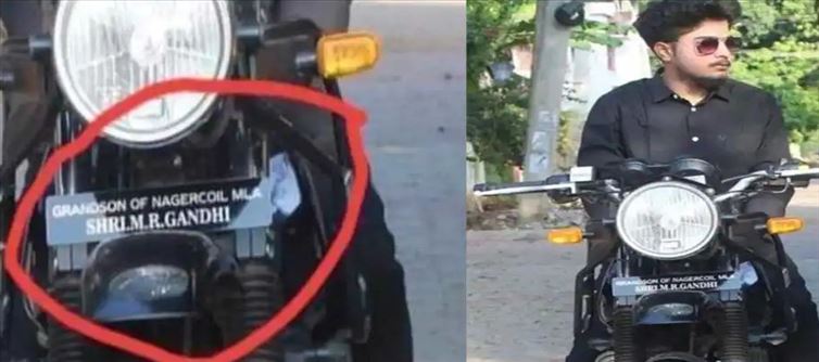 నేను ఎమ్మెల్యే మనవడినీ అంటూ ఓ యువకుడు బైక్ నెంబర్ ప్లేట్ పై స్టిక్కర్ అతికించాడు. వివరాల్లోకి వెళితే కన్యాకుమారి జిల్లాలోని నాగర్ కోయిల్ నియోజకవర్గానికి చెందిన బీజేపీ ఎమ్మెల్యే ఎం ఆర్ గాంధీ మనవడిని అంటూ యువకుడు తన బైక్ నెంబర్ ప్లేట్ రాయించుకున్నాడు. ఇక ఈ నెంబర్ ప్లేట్ ఫోటోలు సోషల్ మీడియాలో వైరల్ గా మారిపోతున్నాయి. సరే పోనీలే నిజంగానే ఎమ్మెల్యే మనవడు ఏమో అందుకే అలా రాయించుకున్నాడు అని అనుకుంటే మాత్రం పొరపాటే.. ఎందుకంటే.. అసలు ట్విస్ట్ ఏంటంటే నాగర్ కోయిల్ ఎమ్మెల్యే ఎం ఆర్ గాంధీ కి అసలు పెళ్లి కాలేదు.