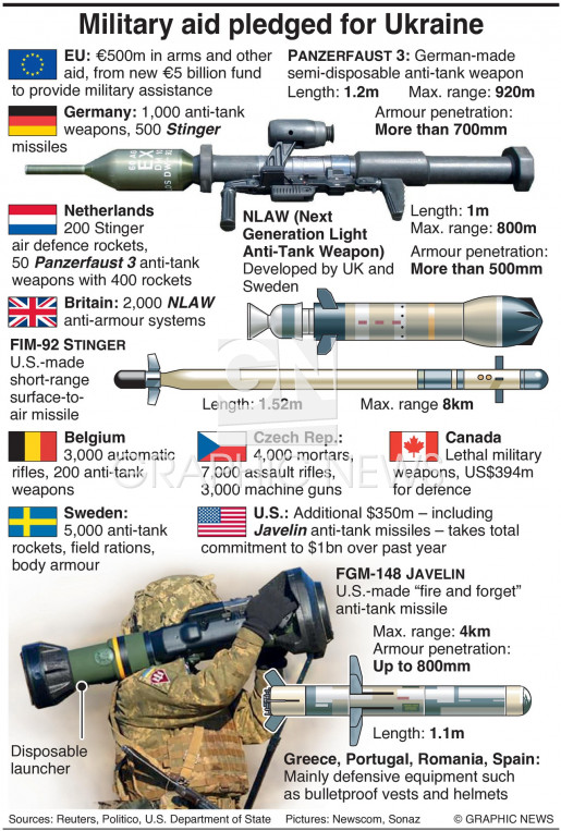 Belgium has sent more than 3,000 automatic weapons and 200 anti-tank weapons to Ukraine. Countries like the Netherlands, Czech Republic, Portugal, Greece, Romania, Italy, and france have also sent weapons.
