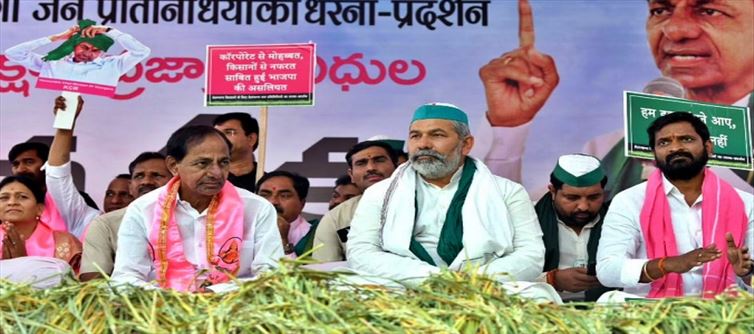 राज्य में तेलंगाना राष्ट्र समिति और भारतीय जनता पार्टी के बीच तनातनी अब नई दिल्ली तक फैल गई है, जहां तेलंगाना के मुख्यमंत्री और राज्य भाजपा अध्यक्ष बंदी संजय कुमार के पोस्टर सामने आए हैं। टीआरएस के कई नेता और समर्थक राष्ट्रीय राजधानी में तेलंगाना भवन में राव के विरोध प्रदर्शन में शामिल हुए हैं। भारतीय किसान संघ (बीकेयू) के राकेश सिंह टिकैत भी विरोध में शामिल हुए। टिकैत ने कहा कि वह केंद्र की पक्षपाती धान खरीद नीति के खिलाफ तेलंगाना सरकार की लड़ाई में शामिल हो रहे हैं।