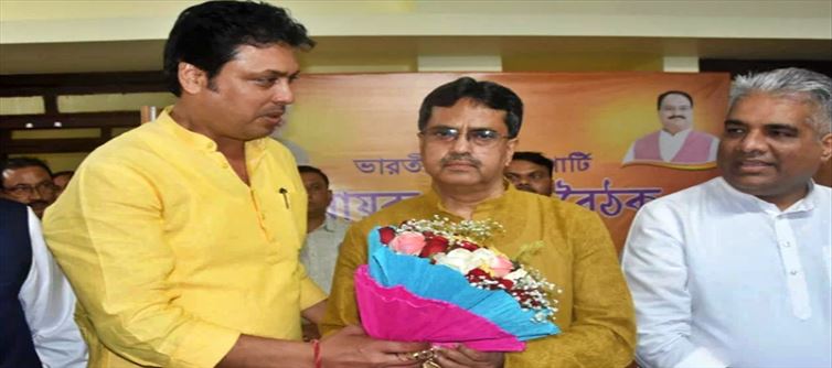 यादव ने ट्वीट कर जानकारी दी कि साहा को त्रिपुरा भाजपा विधायक दल का नेता चुना गया है। साहा वर्तमान में त्रिपुरा भाजपा के अध्यक्ष हैं। पिछले महीने, वह राज्यसभा के लिए चुने गए, त्रिपुरा से उच्च सदन में पहले भाजपा सांसद बने। नेता के रूप में चुने जाने के बाद, साहा ने राजभवन में राज्यपाल से मुलाकात की और पार्टी विधायकों के समर्थन पत्र के साथ सरकार बनाने का दावा प्रस्तुत किया।