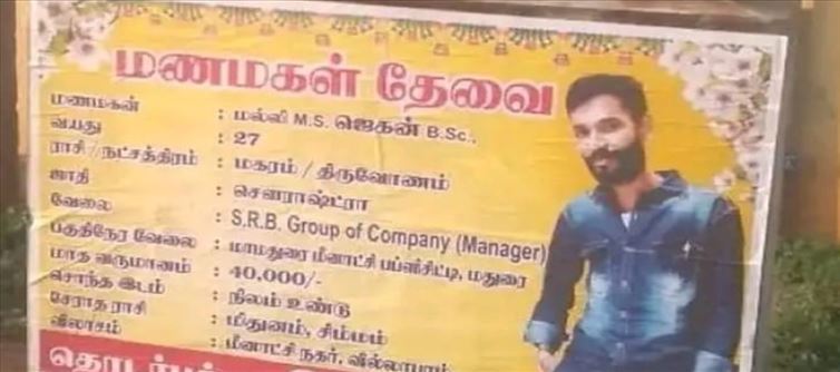 ఇటీవలే ఓ యువతి ఏకంగా గోడ పత్రికలను అతికించి వరుడు కావాలంటూ ప్రకటన చేసింది. ఇప్పుడు తమిళనాడులోని మధురైలో ఒక యువకుడు ఇలాంటిదే చేశాడు. వీధులలో పోస్టర్లు అతికించడం వధువు కావాలంటూ ప్రకటన చేశాడు. 27ఏళ్ల జగన్ ప్రైవేట్ కంపెనీ లో మేనేజర్ గా పని చేస్తున్నాడు. అయితే తన పేరు, కులం, జీతం, వృత్తి, కాంటాక్ట్ నెంబర్ అడ్రస్ వివరాలు అన్నింటినీ కూడా పోస్టర్లో వెల్లడించాడు. ఐదేళ్లుగా భాగస్వామి కోసం వెతుకుతున్నాను అంటూ చెప్పాడు. అయితే గతంలో డిజైనర్గా పని చేయడం వల్ల ఈ సరికొత్త ఆలోచన రావడంతో ఆచరణలో పెట్టాను అంటూ చెప్పుకొచ్చాడు యువకుడు .
