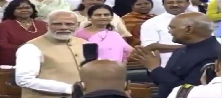 Then when President ram nath kovind visited the function, everyone stood up and paid respect to him. Then Ramnath Kovind came to greet everyone and greeted him in return. prime minister Modi also greeted and the President also greeted. After saying hello, prime minister Modi lowered his hand and stood looking at the camera, only ram nath kovind came to say hello.