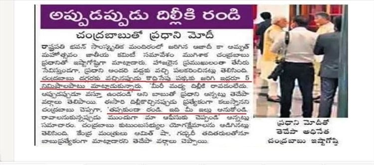 మీరు కచ్చితంగా ఢిల్లీకి రావాల్సిందే ఇది మీ ఇల్లే అనుకోండంటు చంద్రబాబుకు మోడీ స్పష్టంగా చెప్పారంటు రాసుకొచ్చేసింది ఎల్లోమీడియా. తామురాసిందాన్ని చదవిన జనాలు నవ్వుకుంటారన్న మొహమాటాన్ని కూడా ఎల్లోమీడియా ఎప్పుడో వదిలేసింది. నవ్వుకోవటం ఎందుకంటే చంద్రబాబు ఢిల్లీకి ఎందుకు రావటంలేదో మోడీకి తెలీదా ? అసలిప్పుడు చంద్రబాబుకు ఢిల్లీలో పనేముంది రావటానికి. ఢిల్లీకంటు వస్తే అది మోడీనో లేకపోతే అమిత్ షాను కలవటానికే కదా రావాల్సింది. మోడీ, అమిత్ షా చంద్రబాబు మొహం చూడటానికి కూడా ఇష్టపడటంలేదని చంద్రబాబుతో పాటు అందరికీ తెలుసు.