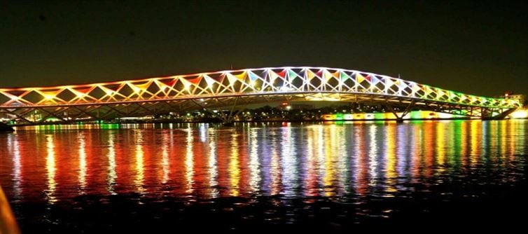 आकर्षक डिजाइन और एलईडी लाइटिंग वाला यह प्रतिष्ठित पुल लगभग 300 मीटर लंबा और बीच में 14 मीटर चौड़ा है। 2,600 मीट्रिक टन स्टील पाइप का उपयोग करके पुल का निर्माण किया गया है। पुल की छत रंगीन कपड़े से बनी है और रेलिंग कांच और स्टेनलेस स्टील से बनाई गई है। पुल को इस तरह से डिजाइन किया गया है कि लोग इसे निचले और ऊपरी दोनों रास्तों से या रिवरफ्रंट के सैरगाह से संपर्क कर सकते हैं।