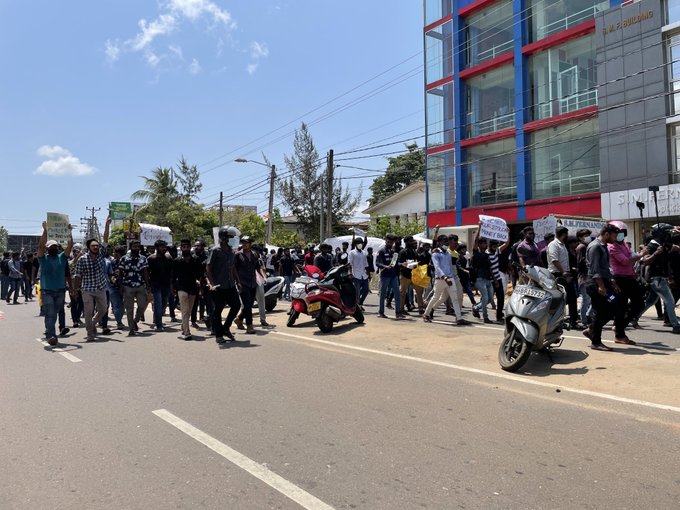 The police had arrested the two who had gone to the police station last night. While it is said that the Mullaitivu police were taking steps to arrest many others, they suddenly jumped into the protest today.As a continuation of their protest, they held a rally and jumped into the protest by blocking the road.