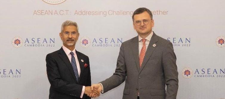 External Affairs minister S jaishankar met Ukraine's Foreign minister Dmytro Kuleba on the sidelines of the ASEAN-India Commemorative Summit held today in Cambodia's capital Phnom Penh. The two leaders discussed a wide range of issues, including the ukraine war and the nuclear threat.