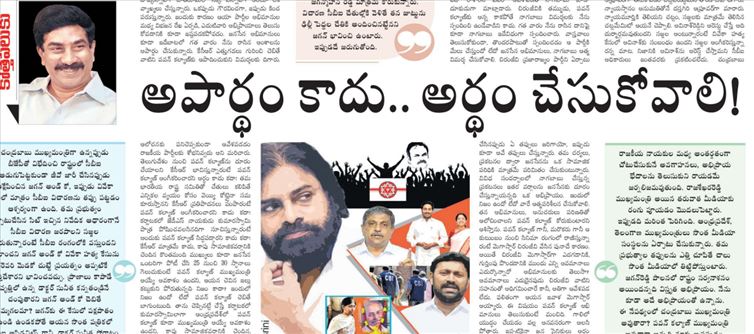 పోయినవారం చెత్తపలుకులో పవన్ను ప్యాకేజీస్టార్ అన్నట్లుగా ముద్రేసేసి ఇపుడు తీరిగ్గా తన ఉద్దేశ్యం అదికాదని సమర్ధించుకోవటం ఏమిటి ? ఎల్లోమీడియా ద్వారా పవన్ కు జరగాల్సిన నష్టం జరిగిపోయింది. తాజా చెత్తపలుకు చూసిన తర్వాత పవన్ను ప్రసన్నం చేసుకునేందుకు ఇచ్చుకున్న వివరణలాగే ఉంది. కేసీయార్ ఆఫరిచ్చారని రాసి వదిలేస్తే పవన్ కు ఎంత డ్యామేజి ? ఆ ఆఫర్ ఏమైందో కూడా రాయాలికదా. లేదా కేసీయార్ ఆఫర్ను తిరస్కరించిన పవన్ అని రాసున్నా అదో పద్దతిగా ఉండేది. ఏదేమైనా బుర్రకు తోచింది రాసేస్తాం తమను ఎవరు అడగకూడదంటే కుదరదంతే.