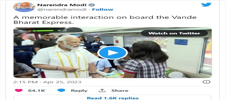 സംസാരിക്കാൻ നിന്നപ്പോൾ പാട്ട് പാടൂവെന്ന് പ്രധാനമന്ത്രി: പാടി തകർത്തു പാർവതിയും! പ്രധാനമന്ത്രിയെ നേരിൽ കാണാനും കവിത ചൊല്ലിക്കൊടുക്കാനും കഴിഞ്ഞത് വലിയ ഭാഗ്യമായിരുന്നുവെന്ന് പാർവതി പറഞ്ഞു. വന്ദേ ഭാരത് ട്രെയിന്റെ ഉദ്ഘാടന യാത്രയിൽ പങ്കെടുക്കാൻ എത്തിയപ്പോൾ പ്രധാനമന്ത്രിക്ക് മുമ്പിൽ പാടി തകർത്ത പാർവതി ഇപ്പോൾ നാട്ടിലെ താരമാണ്.ഉടൻ തന്നെ മനസിൽ ഓർമ്മ വന്ന ഒരു പാട്ട് പാർവതി പാടി. 'ഇനി വരുന്നൊരു തലമുറയ്ക്ക് ഇവിടെ വാസം സാധ്യമോ', എന്ന കവിതയാണ് പാർവതി പാടിയത്. പ്രധാനമന്ത്രിക്ക് വരികളുടെ അർഥം ഇംഗ്ലീഷിൽ പറഞ്ഞു കൊടുത്തിട്ടാണ് പാർവതി കവിത ആലപിച്ചത്. കവിത മുഴുവൻ ആസ്വദിച്ച ശേഷം പ്രധാനമന്ത്രി പാർവതിയെ അഭിനന്ദിച്ചു. പ്രധാനമന്ത്രി പാർവതി പാടുന്നതിന്റെ ദൃശ്യം ട്വീറ്റ് ചെയ്യുകയും ചെയ്തിരുന്നു. സ്കൂളിൽനിന്ന് തിരഞ്ഞെടുത്ത ഒൻപത് പേരിൽ അഞ്ചുപേർക്കാണ് പ്രധാനമന്ത്രിയുമായി സംവദിക്കാൻ അവസരം ലഭിച്ചത്. പ്രധാനമന്ത്രിയോട് സംസാരിക്കാനായിരുന്നു പാർവതി തയ്യാറെടുത്ത് നിന്നത്. എന്നാൽ പെട്ടെന്നായിരുന്നു അദ്ദേഹം പാട്ടു പാടാൻ പറഞ്ഞത്.