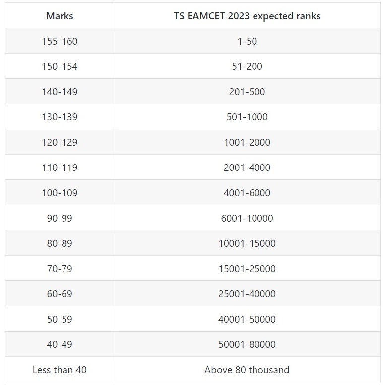 Based on their test results, candidates can estimate where they will place in the TS EAMCET in 2023. According to Sakshi, the projected rank distribution based on marks is as follows: