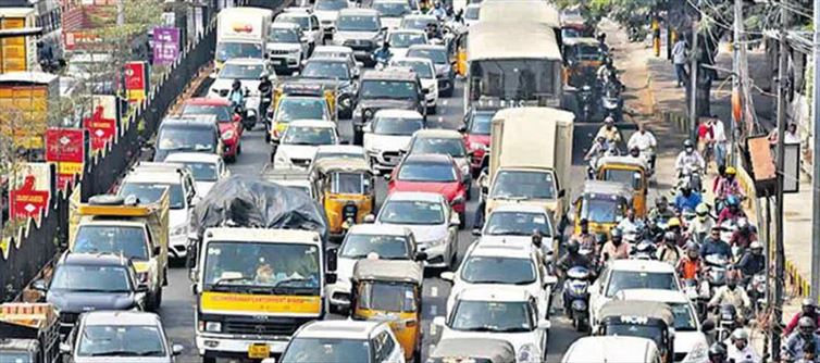 In the State a decade ago, there were around 70.73 lakh registered cars, of which 8.22 lakh were used for transportation and 63.68 lakh were not. More than 52.84 lakh two-wheelers, 7,96,232 automobiles, 14,989 Jeeps, 74,097 taxis, 40,807 buses, 1,85,688 light vehicles (goods), and 1,25,240 trucks were registered in the state during 2013–2014. hyderabad had just 25 lakh automobiles at the time telangana was formed, but over the past 10 years, this number has steadily climbed every year.