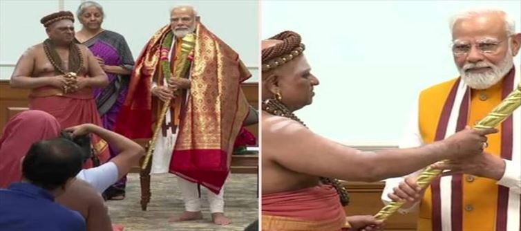 नए संसद भवन के उद्घाटन की पूर्व संध्या पर शनिवार को प्रधान मंत्री नरेंद्र मोदी को अधीम (पुजारियों) ने पवित्र राजदंड, सेनगोल सौंप दिया। अधिनाम ने पीएम मोदी को एक विशेष उपहार भी भेंट किया। पीएम मोदी ने अपने आवास पर आज राष्ट्रीय राजधानी के लिए उड़ान भरने वाले अधीमों से मुलाकात की। प्रधानमंत्री ने भी उनका आशीर्वाद मांगा।