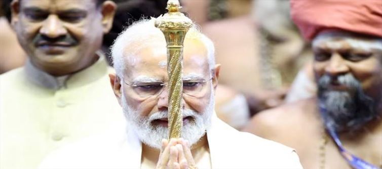 इसे इलाहाबाद गैलरी की नेहरू प्रदर्शनी में रखा गया था और संसद के नए ढांचे में इसकी स्थापना के लिए दिल्ली ले जाया गया है। मदुरै अधीनम (मठ) के प्रधान पुजारी ने रविवार को पीएम मोदी को उसी अंदाज में पेश किया।
