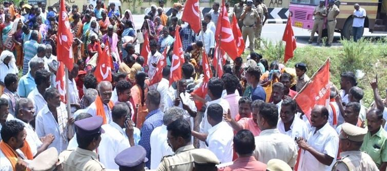 Today in Karumathur near Usilambatti, All india Agricultural workers Union and Marxist Communist party held a settlement protest on Panchami land. Hundreds of people participated in the protest.