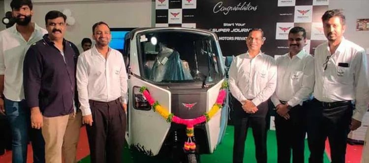 The Murugappa Group's electric three-wheeler, the Montra Electric Super auto, has arrived in Hyderabad. On Wednesday, Yuktha Motors dealer Gopal Reddy, national head Raghava Rao, and zonal sales head pradeep R joined Montra Electric CEO Sushant Jena to officially open the hyderabad showroom. The Super auto has a top speed of 55 kmph and a maximum torque of 60Nm. According to a press release, it has park assist mode for enhanced agility and multi-drive variants for better economy.