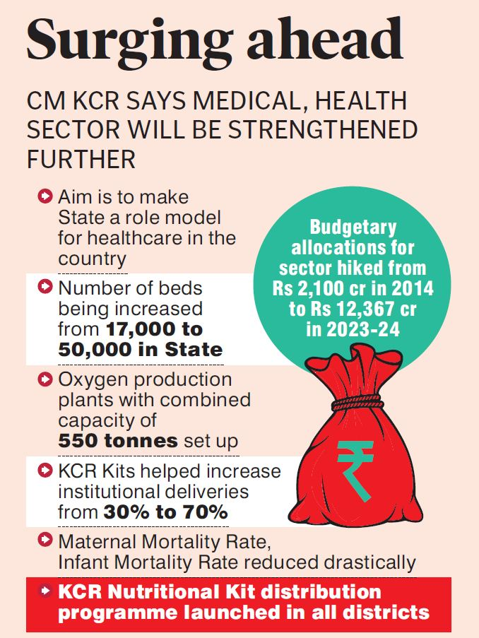 Telangana's medical and health sector would continue to be strengthened by the State administration, according to chief minister K Chandrashekhar Rao, who has pledged to make his state a national model.