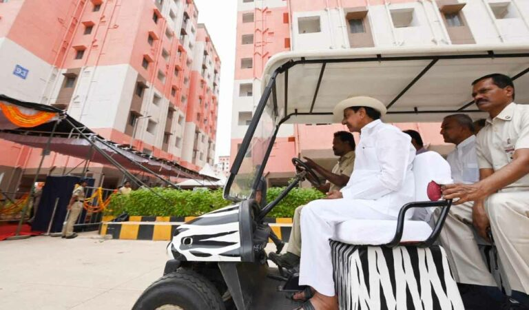 Later, Chandrashekhar Rao planted a tree on the grounds of the housing project and drove about in a battery-powered car to look at the facilities and housing units. Beneficiaries Gaddameedi Renuka, Haisiya Begum, Mudawath Sharada, Pulligala Devi, chakali Sujatha, and Ketavath keerthi received house units from him.