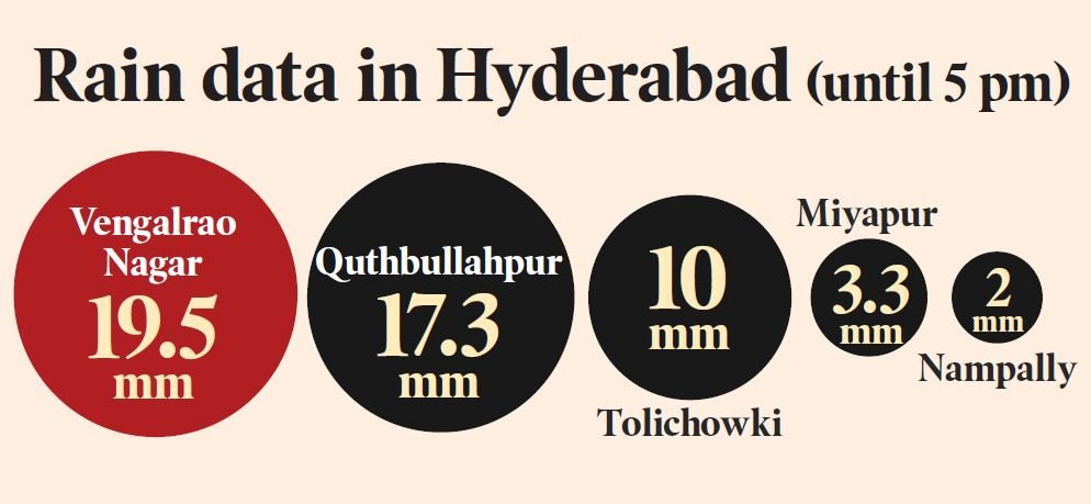 The water levels in various water bodies have increased as a result of the heavy downpour that occurred tuesday evening, according to meteorological specialists. On wednesday morning, the situation marginally improved as the rain became lighter, although the rains continued until the evening with less intensity. Low-lying region residents have been urged to exercise caution and stay attentive. people have been asked by the telangana State Development Planning Society to stay inside during periods of heavy rain and to monitor weather updates.