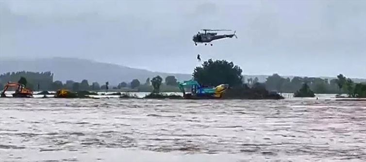 On Thursday, the State's attempts to provide assistance to flood-affected communities in bhupalpally district involved two indian air Force (IAF) helicopters from the air Force Station Hakimpet, Hyderabad. Six individuals who were trapped on top of an earthmover in the flood-stricken Nainpaka hamlet of bhupalpally were rescued by the helicopters after they took off from the Hakimpet air Force Station.