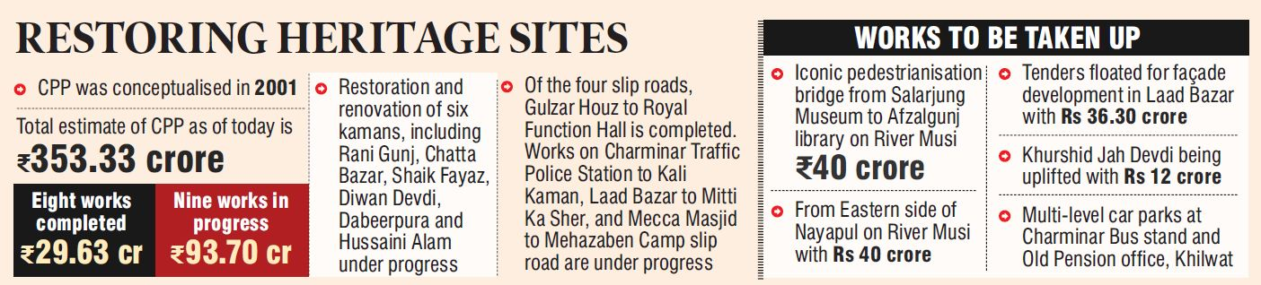 The minister expressed regret for the delay in the CPP's completion and said that, in addition to government money, the project also had backing from the ghmc via the Quli Qutb Shah Urban Development Authority (QQSUDA). He stated during Question Time in the assembly on friday that hmda further supported the restoration of historic places.