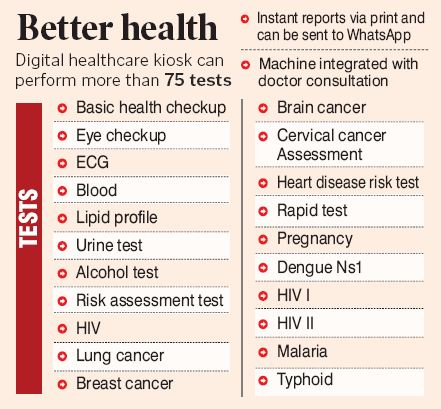 Reports produced may be printed out from the device or forwarded as a soft copy to a whatsapp number. Additionally, it saves the patient's medical records in wallet PLATFORM' target='_blank' title='digital-Latest Updates, Photos, Videos are a click away, CLICK NOW'>digital format for use in the future to improve patient care. The kiosk, which resembles an ATM, is simple to operate. people may sign up using their cellphone number, a thumb scanner, or a health card.