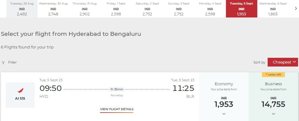 Across its domestic and international route network, air india has begun a special 96-hour sale, giving passengers the opportunity to book their forthcoming travel at competitive rates. The cost of an air india flight from hyderabad to Bengaluru is as low as Rs. 1931 due to the decline in airfares.