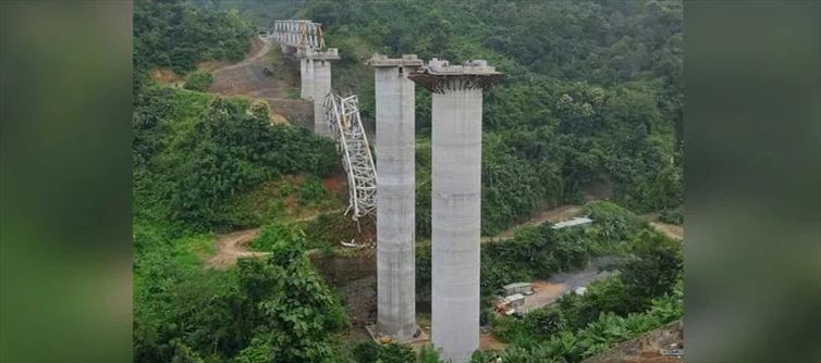 According to authorities, a train bridge under construction in Mizoram's Sairang region fell on wednesday, killing at least 17 employees. police and train authorities report that 17 bodies have so far been found. Around 40 workers were there when the disaster happened on wednesday morning, and many more are suspected to be stuck at the catastrophe site. Construction was ongoing on the railway bridge that would connect Bairabi and Sairang across the Kurung River.
