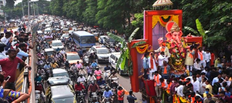 The city traffic police declared the following traffic entrance, exit, and detours be made from september 15 at 7 AM to september 18 at 10 PM in anticipation of the movement of Ganesh idols from Dhoolpet. Only from MJ Bridge to gandhi Statue to Dhoolpet will vehicles transporting Ganesh idols be permitted. Between the aforementioned periods, other vehicles will not be permitted from MJ Bridge to Puranapool between 7 PM and 6 AM.