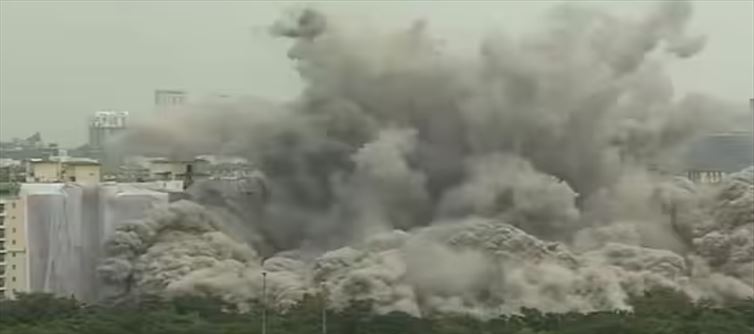 These two buildings were constructed in a modern way not long ago. Due to some technical reasons, the buildings were having problems and it was decided to demolish both simultaneously. These two buildings, located next to the Western Hotel in Madapur, were demolished in moments. Officials said that explosives were used on a large scale for the demolition of these two buildings. Officials took due care while demolishing the buildings. More details about this are to be known. Two seven-story buildings collapsed in five seconds. Edipic Engineering has undertaken the demolition of the buildings.