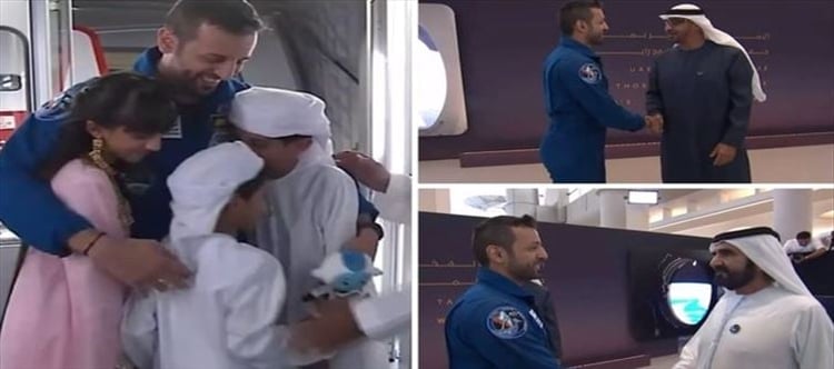 അന്താരാഷ്ട്ര ബഹിരാകാശനിലയത്തിൽ ഏറ്റവുമധികം കാലം താമസിച്ച അറബ് യാത്രികൻ, ബഹിരാകാശത്ത് നടക്കുന്ന ആദ്യ അറബ് യാത്രികൻ എന്നീ നേട്ടങ്ങൾ കൈവരിച്ച 42കാരന് രാജ്യം ഗംഭീര വരവേൽപ് നൽകി.