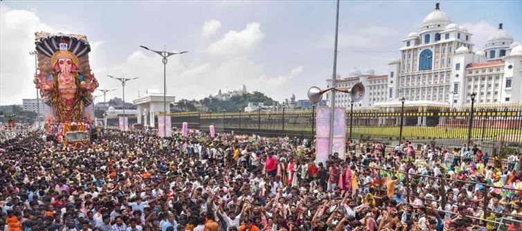 Following the nine-day ganesh chaturthi celebrations, the procedure of immersing Lord Vinayaka idols in waterbodies began here on thursday, under extensive security measures. During the 'Nimajjanam' (immersion) procedure, around 90,000 idols of Lord Vinayaka are anticipated to be submerged in Hussain Sagar and countless other lakes and water bodies. The large idol placed at Khairatabad in the city's center serves as the major draw for the ganesh chaturthi celebrations in hyderabad every year.