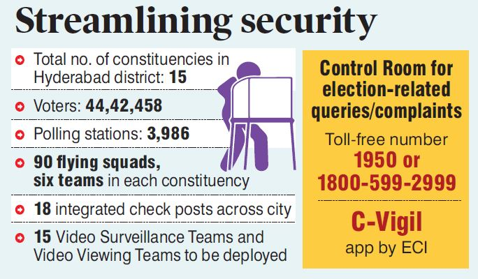 The 18 integrated checkpoints located around the city will track moving cash and alcoholic beverages as well as track vehicles for the RTA, Income Tax, ED, Excise, GST, Customs, Narcotics, and police departments. All significant political gatherings and rallies will also be monitored by 15 video surveillance and video viewing teams.