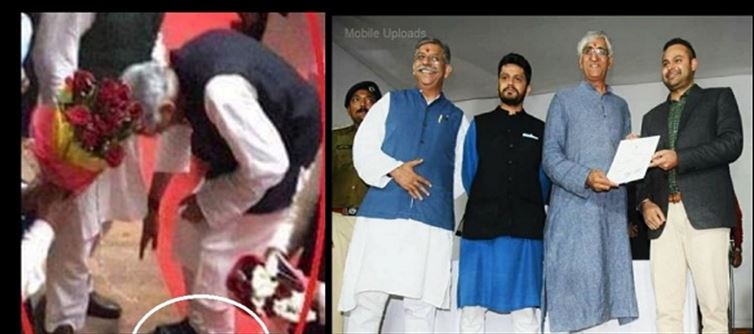 Amarjeet Bhagat, who was coming from the front, also touched the feet of cm Bhupesh Baghel and took