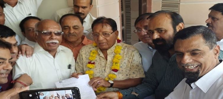 Minister Shanti Dhariwal, who came to file nomination with a rally of thousands from Nayapur Stadium, while