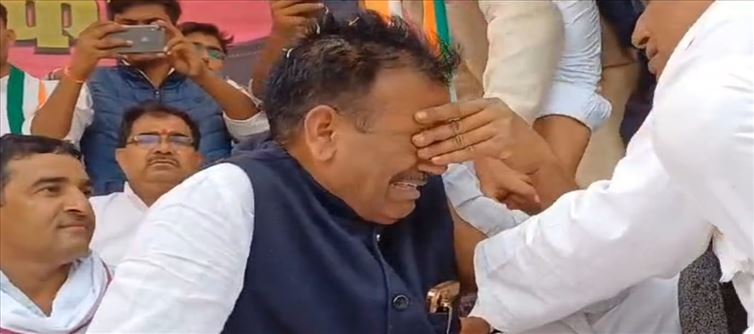 Today, amar singh Jatav, congress MLA and candidate from Bayana assembly seat, started crying bitterly at