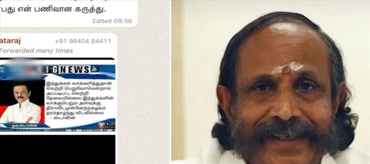 In that, if Hindus win only by voting, then such a victory is not necessary. It is reported that chief minister Stalin said that the DMK has not degraded to the extent of getting Hindu votes. He said to share the fake news with everyone. Following this, it has been reported that a case will be registered against former DGP Nataraj.