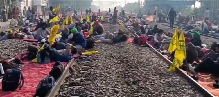 the railway track. A group of ex-servicemen staged a sit-in on the railway tracks at Patiala’s Shambhu railway