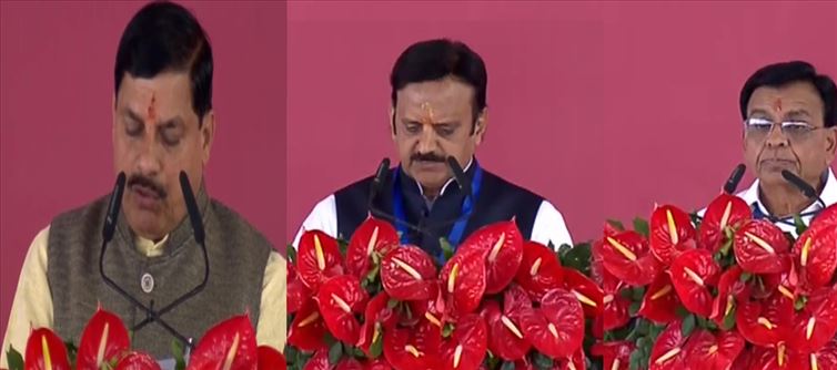 Madhya Pradesh’s newly elected chief minister Dr. Mohan Yadav and his two Deputy Chief Ministers Rajendra
