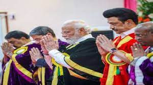 Prime Minister Modi attended the 38th convocation ceremony of Trichy Bharathidasan university as the chief guest and awarded  degrees to the students. The program was attended by governor RN Ravi, prime minister Stalin and Higher education Minister raja Kannappan. prime minister Modi congratulated the 30 graduates. "Hello, students and families. I am  in tamil Nadu for the first government function of the year," PM Modi said at the graduation ceremony. The graduation ceremony of Bharathidasan university is very special to me. I am happy to be with the young people and in the beautiful state of tamil Nadu. I wish all the graduates and their parents the best of luck. He said, "I am proud to be the first prime minister to come to Bharathidasan University. The cities of kanchi and madurai were distinguished in ancient times for their educational excellence."  In his speech, he said that Vijayakanth is a captain not only in the film industry but also in the political world. He also expressed his condolences to his grieving family. Earlier, prime minister Modi had condoled the death of Mr. Vijayakanth and posted this on the X site page. It read, ``Very saddened to hear the news of Mr. Vijayakanth's death.One of the luminaries of the tamil film industry, Mr.Vijayakanth won the hearts of millions  with his brilliant acting. .” He made a lasting impact on the politics of tamil Nadu. His death caused an irreparable loss. who was my best friend? I recall past meetings with him. Our deepest condolences go out to his family, fans and volunteers at this very sad moment. 'Om Shanti' was posted by prime minister Modi.