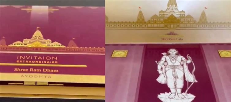 Each invitation contains a program card for the idol consecration and a booklet containing notes on the journey of the ram Janmabhoomi movement and those who have directly or indirectly participated in it. The cover of the invitation has a picture of ram temple and below it is printed 'Shri ram Dham' and below that 'Ayodhi'. Also printed on the cover of the invitation is "Special Invitation" or "Apoorva Anatik Nimanthran" (Hindi). The cover of the "Sailai Pratishtai" event card also has a silhouette of the temple and below it a caption "Vija Shishali" or "Karyakram Visesh" (in Hindi).