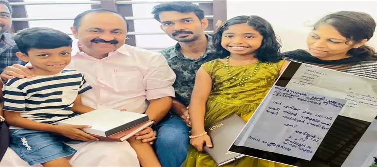 ഡയറി ആവശ്യപ്പെട്ട് കത്തെഴുതിയ ഒന്നാം ക്ലാസുകാരനെ വീട്ടിലെത്തി കണ്ട് പ്രതിപക്ഷ നേതാവ് വിഡി സതീശൻ. ഒരു ഡയറി തരുവോ?' ഒന്നാം ക്ലാസുകാരൻ ആദിത്യൻ കത്തെഴുതി; സമ്മാനവുമായി വീട്ടിലെത്തി വിഡി സതീശൻ. പ്രതിപക്ഷ നേതാവിൻറെ പറവൂരിലെ ഓഫീസിൽ ഇന്നലെയാണ് കത്ത് കിട്ടിയത്. ഇതിന് പിന്നാലെ ഇന്ന് രാവിലെ വീട്ടിലെത്തി വിഡി സതീശൻ ആദിത്യനേയും കുടുംബത്തേയും കണ്ടു. ഡയറികൾ കൈമാറുകയും ചെയ്തു, ആദിത്യൻ എഴുതട്ടെ. എഴുതി എഴുതി തെളിയട്ടെ. അവൻറെ സന്തോഷത്തിൽ ഭാഗമാകുന്നെന്ന് സന്ദർശനത്തിന് പിന്നാലെ പ്രതിപക്ഷ നേതാവ് ഫേസ്ബുക്കിൽ കുറിച്ചു. 'ബഹുമാനപ്പെട്ട പ്രതിപക്ഷ നേതാവ് വിഡി സതീശൻ സാറിന് ക്രിസ്മസ് പുതുവത്സര ആശംസകൾ. സാർ, എനിക്ക് 2024 ലെ ഒരു ഡയറി തരുവോ. സ്കൂളിൽ ഡയറി എഴുതാൻ പറഞ്ഞിട്ടുണ്ട്.' എന്നായിരുന്നു ആദിത്യൻ കത്തിൽ എഴുതിയിരുന്നത്. സ്വയം വരച്ച ചിത്രങ്ങൾ ഉൾപ്പെടെയായിരുന്നു ആശംസ കാർഡ്.