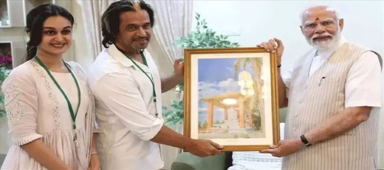 సీనియర్ స్టార్ హీరో యాక్షన్ కింగ్ అర్జున్ గురించి ప్రత్యేకంగా చెప్పనవసరం లేదు. ఒకే ఒక్కడు సినిమాతో సౌత్ సినిమా ఇండస్ట్రీని అప్పట్లో షేక్ చేశాడు. ఇక అర్జున్ తన సొంత ఖర్చులతో తనకు హనుమంతుని పై ఉన్న భక్తితో గుడిని నిర్మించిన సంగతి తెల్సిందే. కొన్నాళ్ల క్రితం ఆ గుడి నిర్మాణం కూడా పూర్తి అయ్యి ఎంతో వైభవంగా ప్రారంభం  అయ్యింది.చాలా మంది ప్రముఖులు ఇప్పటికే అర్జున్ కట్టించిన హనుమంతుని దేవాలయం ను సందర్శించారు.తాజాగా ప్రధాన మంత్రి నరేంద్ర మోడీ తమిళనాడులో పర్యటించారు. ఆ సందర్భంగా పలు ఆలయాలను నరేంద్ర మోడీ సందర్శించారు. ఆ సమయంలో అర్జున్ ఇంకా ఆయన కూతురు ఐశ్వర్య కలిసి మోడీని కలిశారు. అప్పుడే తన కూతురు ఐశ్వర్య తో కలిసి తాము నిర్మించిన హనుమంతుడి ఆలయంను సందర్శించాలని ప్రధాని మోడీకి అర్జున్ విజ్ఞప్తి చేశారు.అలాగే ప్రత్యేకమైన ఆంజనేయుడి చిత్ర పటాన్ని ప్రధాని నరేంద్ర మోడీకి అర్జున్ ఇంకా ఐశ్వర్య లు అందించారు.