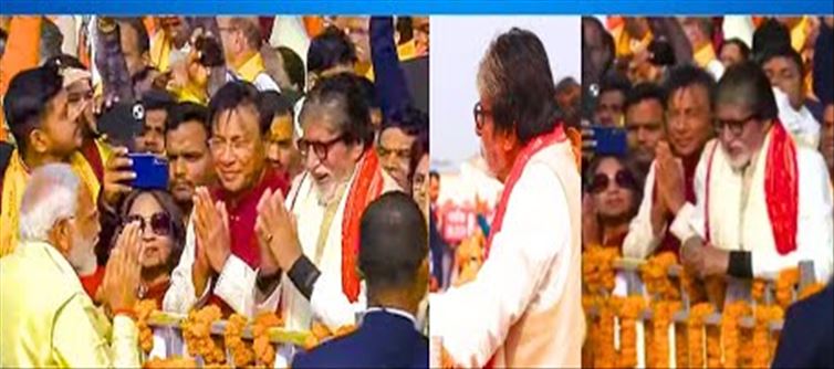 Reportedly yesterday the consecration program of ram Lalla was completed with full rituals in ayodhya today. Many veteran bollywood actors were invited to attend this function. The biggest name among these stars was amitabh Bachchan. amitabh bachchan had reached ayodhya with his actor son abhishek Bachchan. During this, Big B was seen in traditional clothes. After the completion of pran Pratishtha, a video of amitabh bachchan and prime minister Narendra Modi is rapidly going viral on social media.
