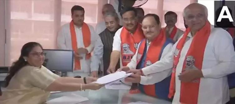 bjp President in gujarat J.P. All four candidates of the party from gujarat, including Nadda, filed nomination papers for the upcoming rajya sabha elections here on Thursday. Apart from Nadda, bjp has nominated party leaders Jaswantsinh Parmar, mayank nayak and diamond businessman Govind Dholakia as candidates for the elections to be held on february 27. When Nadda reached the state assembly complex here to file his nomination papers, gujarat Chief minister Bhupendra patel and bjp state unit chief C.R. Patil was with him. Returning officer rita Mehta accepted the documents of all four bjp candidates.