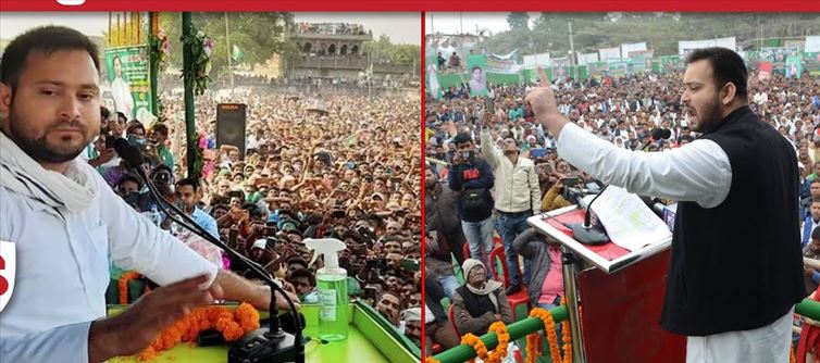 After this, Tejashwi Yadav, riding on the roof of his chariot, started his speech from the mike and appealed to the people to drive away bjp and save the country. He said that bjp has to run away from the country and save the country. Attacking cm Nitish Kumar, Tejashwi Yadav said, "Uncle has turned, it doesn't matter, but let him be happy wherever he lives. Now bihar is not going to run with him. Now we have to take bihar forward." ."