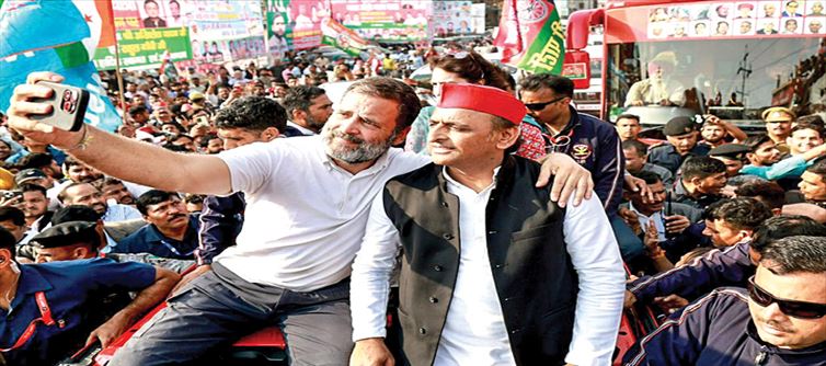 Samajwadi party national president akhilesh yadav has also reached Agra, Uttar Pradesh to participate in congress leader rahul Gandhi's Bharat Jodo Nyay Yatra. Akhilesh's show of strength was also seen in rahul Gandhi's visit and a large number of SP workers were also present. After garlanding the statue of Ambedkar, both the leaders will undertake a padyatra.