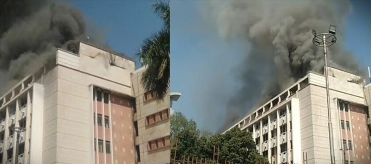 There is news of a sudden fire in the secretariat of Bhopal, the capital of Madhya Pradesh. On the morning of saturday 9 March, a plume of black smoke rose from the secretariat building. It can be judged from the smoke that the fire is severe. In such a situation, fire department vehicles reached the spot and started trying to extinguish the fire. At present, the reason for the fire has not been revealed. There is also news of five people trapped in the building, efforts are being made to rescue them safely. As soon as the news of fire broke out at Vallabh Bhawan State secretariat in Bhopal, police and fire department vehicles reached there and now the cause of the fire is being ascertained.